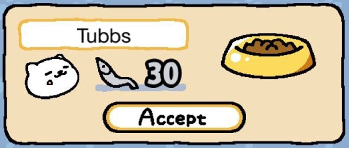Nếu đưa ra bất kỳ thức ăn nào tốt hơn Thrifty Bitz giá rẻ, mọi người được một con mèo mũm mĩm tên Tubbs ghé thăm. Nó sẽ ăn hết thức ăn và ở yên một lúc. Nếu đổ đầy lại thì Tubbs sẽ bỏ đi, tuy nhiên, nếu để nguyên cái bát và để nó tự rời đi, chú mèo sẽ tặng rất nhiều cá, có thể dùng làm thức ăn để thu hút thêm mèo đến sân nhà.