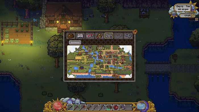 Sun Haven có một tùy chọn trong Game Settings để làm cho ngày trôi qua nhanh hơn hoặc chậm hơn. Trong menu Options, tất cả những gì người chơi phải làm là trượt thanh cuộn Day Speed đến các mức tăng 40, 30 hoặc 20 phút. Gia số 30 phút là mặc định. Tăng 40 phút có nghĩa là thời gian sẽ trôi chậm hơn, tương tự như vậy, tăng 20 phút có nghĩa là thời gian sẽ trôi nhanh hơn.