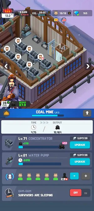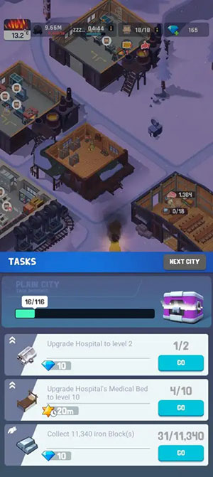 Đảm bảo thường xuyên kiểm tra tình trạng của những người sống sót và cho họ nghỉ ngơi trước khi bắt họ làm việc theo ca kéo dài. Trạng thái của người sống sót là một khía cạnh quan trọng của Frozen City vì nó cho phép cư dân tiếp tục sống sót và game thủ tiến bộ trong trò chơi.