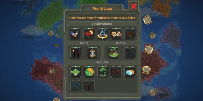 Nếu thế giới hiện tại có quá nhiều tác nhân hoặc hơi nguy hiểm đối với các nền văn minh mới, người chơi có thể điều chỉnh luật thế giới bất kỳ lúc nào để quyết định điều gì là có thể và không thể.