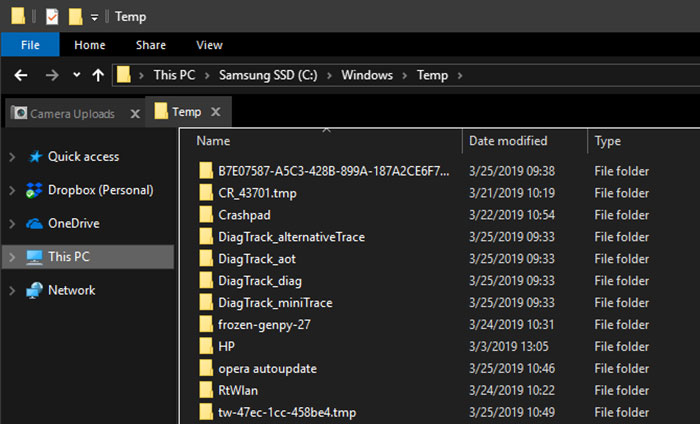 Các tệp tạm thời không quan trọng, chứa thông tin mà Windows đã sử dụng cùng một lúc, nhưng không cần nữa. Vị trí của tệp này là C:\Windows\Temp.