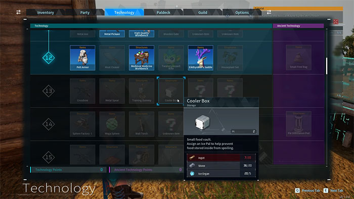 Trong Palworld, người chơi có Technology Point để mở khóa nhiều công nghệ khác nhau. Để mở khóa tính năng này, hãy nhấn Tab trên bàn phím và truy cập tab Technology. Nhấp vào nó và một loạt các cấu trúc để mở khóa cũng như số Technology Point cần thiết để mở khóa chúng sẽ xuất hiện. Để bắt đầu, game thủ nên mở khóa Crafting Station, Pal Sphere và Chest.