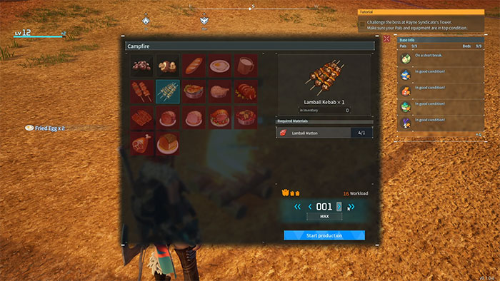 Ngoài ra, đừng quên thu thập thức ăn. Red Berry có thể được tìm thấy rất nhiều trong thế giới mở và một số Pal mà game thủ giết, chẳng hạn như Lamball sẽ đánh rơi nguyên liệu để nấu ăn trong Palworld.