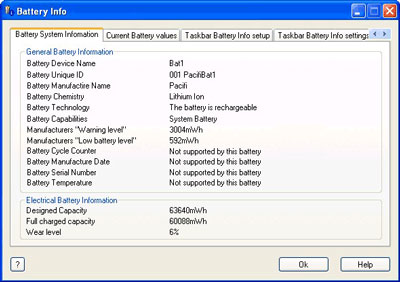 Vấn đề về Pin trong MTXT (NoteBook) là một trong những mối quan tâm hàng đầu của người sử dụng thiết bị này. Mỗi khi sử dụng MTXT, Windows thường thông báo một biểu tượng nhỏ trên khay hệ thống về lượng Pin hiện tại của máy. Tuy nhiên chức năng này có nhiều khuyết điểm: bạn không thể biết được số năng lượng phần trăm hiện tại (phải rà mouse vào biểu tượng mới thấy được); Bạn không thể biết được khoảng thời gian còn sử dụng được máy tính tương ứng với Pin cũng như một số thông tin về Pin của máy... Với NoteBook Battery Info, bạn sẽ thực hiện được các điều đó.