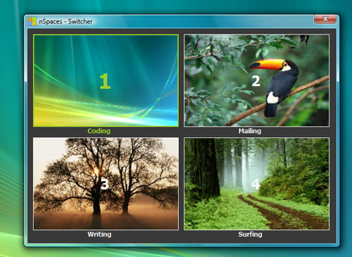 Những Virtual Desktop (màn hình desktop ảo) luôn hữu dụng cho việc phân chia công việc của bạn thành nhiều không gian làm việc để hiệu quả hơn trong việc tổ chức và quản lý công việc của bạn. nSpaces 1.0 là một ứng dụng virtual desktop (màn hình desktop ảo) để chuyển đổi giữa các không gian làm việc.
