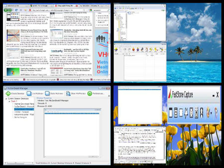 Chúng ta phải đối mặt với một cái màn hình đầy những biểu tượng thư mục, tập tin, shortcut… Và nhiều cửa sổ ứng dụng dẫn đến tình trạng quá tải cho Desktop. Điều đương nhiên là hiệu suất làm việc của bạn sẽ giảm xuống và chúng ta phải cần một không gian thao tác rộng hơn. NuGenDeskX sẽ giải quyết vấn đề đó bằng cách tạo ra nhiều màn hình làm việc trên một Desktop để chúng ta có một không gian thật rộng rãi để làm việc.