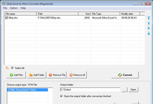 Okdo Excel to Html Converter là phần mềm chuyển đổi linh hoạt và rất dễ sử dụng, cho phép bạn có thể chuyển đổi các file xls, xlsx, xlsm sang định dạng HTML mà vẫn giữ nguyên được cấu trúc gốc của file nguồn. Phần mềm này có thể chuyển đổi với chất lượng đầu ra cao cùng tốc độ chuyển đổi rất nhanh. Bên cạnh đó, phần mềm này còn hỗ trợ kết hợp mỗi một dòng của file Excel thành một Htm, bạn có thể thêm toàn bộ folder để chuyenr đổi và đặt mở folder đầy ra khi chuyển đổi hoàn thành.