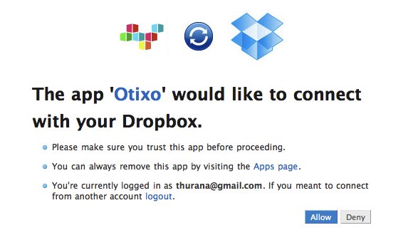 Sau đó cho Otixo quyền kết nối với tài khoản bằng cách nhấn nút Allow