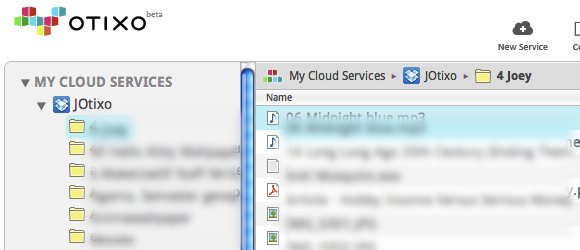 Sau khi đăng nhập, bạn có thể bắt đầu quản lý tài khoản đám mây bằng cách thêm từng dịch vụ một vào Otixo.Hiện tại các dịch vụ đám mây được hỗ trợ bao gồm Dropbox, Box.net, MobileMe, GoogleDocs và các dịch vụ lưu trữ trực tuyến khác sử dụng giao thức WebDav hay FTP.
