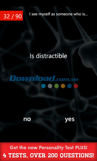 Personality Test for Windows Phone cung cấp một hệ thống các bài kiểm tra tính cách - cá nhân độc đáo và miễn phí trên các thiết bị Windows Phone.