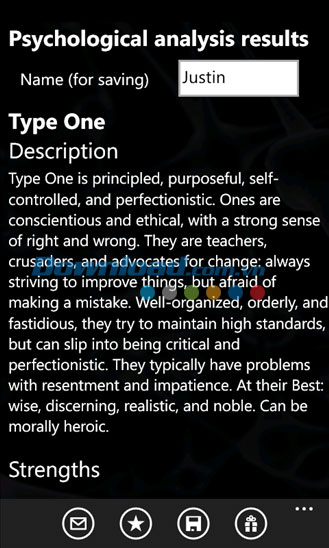 Tính năng chính của ứng dụng Personality Test for Windows Phone:
