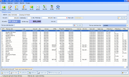 - Quản lý tiền học phí cùng tiền tài liệu kèm theo với các mức giảm giá khác nhau của mỗi lớp học.