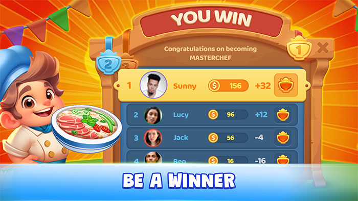 Thi đấu với những đầu bếp khác và người nắm vững công thức nấu món phở thơm ngon danh bất hư truyền, chăm chỉ rèn luyện nâng cấp kỹ năng sẽ trở thành người chiến thắng và leo lên top đầu bảng xếp hạng.