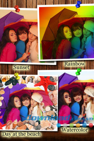 Các hiệu ứng ảnh được phép chồng lên nhau, do đó một hiệu ứng có thể được áp dụng sau một hiệu ứng khác vì vậy người dùng có thể tạo các sự kết hợp hiệu ứng để tạo hình ảnh mang tính cá nhân hóa cao. Và khi bạn hoàn thành việc sửa ảnh, hãy chia sẻ chúng trực tiếp qua mạng xã hội Facebook hoặc Email dưới dạng tệp tin đính kèm tới bạn bè mình.