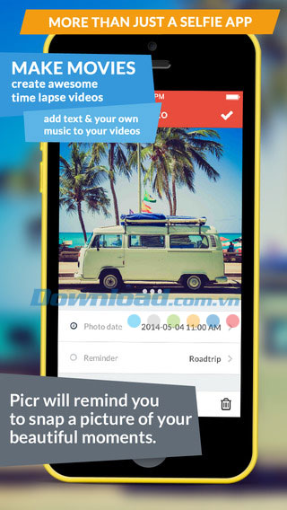 Với Picr, người dùng sẽ dần dần hình thành thói quen chụp ảnh hàng ngày của mình bởi ứng dụng sẽ nhắc bạn thường xuyên. Các công cụ hữu ích trong Picr giúp bạn chụp và chọn tấm ảnh tốt nhất. Sắp xếp chủ đề theo dạng lưới và sử dụng hiệu ứng chồng hình cho ảnh mới nhất vừa chụp. Bạn cũng có thể tạo video cô đọng thời gian từ những bức ảnh thu thập được. Tất cả mọi cộng cụ hữu ích đều có trong một ứng dụng duy nhất, với dung lượng nhỏ gọn chưa tới 10 MB.