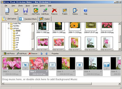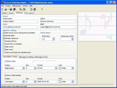 Pictures Slideshow Maker sử dụng rất nhiều hiệu ứng đặc biệt của 2D và 3D như: hiệu ứng mờ dần. Bạn có thể sử dụng hình ảnh từ các định dạng JPEG, TGA, BMP, RLE, DIB, TIF, TIFF, VSD, ICB, VDA, WIN, PCX, PCC, BW, RGB, RGBA, SGI, PSD, PDD và PNG và các tập tin âm thanh từ MP3, WAV, MPA, MP2, AU, AIF, AIFF, SND, MID, MIDI và RMI.