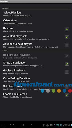 Chế độ bắt đầu lại (Resume) - Picus Audio Player Lite hỗ trợ lưu trữ thông tin cho track nhạc phát gần nhất và phát tiếp ở vị trí tương tự khi dừng phát nhạc.
