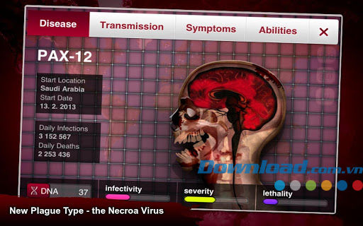 Plague Inc. for Android sở hữu một hệ thống thông tin cực kỳ chi tiết, giúp bạn dễ dàng theo dõi trạng thái và số liệu thống kê trong quá trình chơi. Các thông tin về số lượng người chết, người nhiễm bệnh, các khu vực nhiễm bệnh, thời gian để hoàn thành các phương thuốc chữa trị, các nước góp phần nghiên cứu phương thuốc, cách phát triển thuốc... tất cả đều được hiển thị đầy đủ và chi tiết.