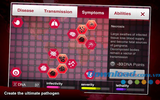 Trong quá trình chơi, game thủ sẽ phải thu thập các điểm DNA xuất hiện trên bản đồ mỗi khi dịch bệnh của bạn lây lan đến vùng đất mới. Điểm DNA được dùng để "nâng cấp" dịch bệnh của bạn - chẳng hạn như khả năng lây nhiễm, mức độ nghiêm trọng, khả năng kháng thuốc hay tốc độ bùng phát gây chết người.