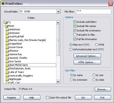 PrintFolders 2.41a là chương trình nhanh chóng in ra danh sách các thư mục, có thể bao gồm dung lượng, giờ, ngày, tháng của tập tin... Sau khi cài đặt sẽ tích hợp vào menu chuột phải, muốn in danh sách của thư mục nào thì nhấp chuột phải và chọn PrintFolder, rồi chuyển sang cửa sổ chính của chương trình. Bạn có thể xác lập các thông số như là Font, Left Margin, số hàng...