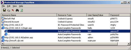 Protected Storage PassView là tiện ích đọc lại mật khẩu được lưu trong máy bạn bởi các trình duyệt IE, OE và MSN Explorer từ kho lưu trữ của Windows.