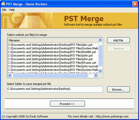 Kết hợp nhiều file Outlook PST với phần mềm PST Merge. Người dùng có thể nối danh sách liên lạc, lịch làm việc, danh sách việc cần làm, các tác vụ vào một file PST đơn chỉ trong một vài giây. Phần mềm này sẽ thực hiện quá trình kết hợp Outlook rất nhanh chóng, giúp nối nhiều file PST thành một.