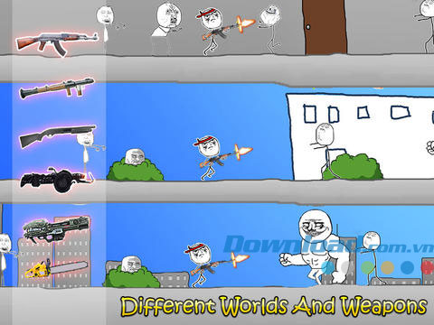 Rage Wars HD - Meme Shooter for iPad sở hữu nền tảng hình ảnh vui nhộn, độc đáo. Đặc biệt, hiệu ứng âm thanh trong tiếng súng đạn đã góp phần làm tăng tính chiến đấu của trò chơi.