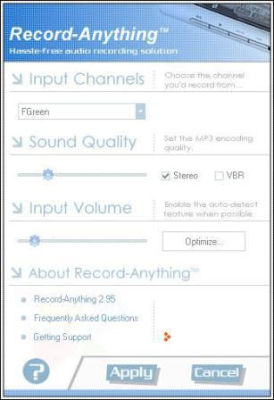 Record Anything là một phần mềm mang tính đột phá cho việc ghi âm trong windows. Không như những phần mềm ghi âm phức tạp khác, Record-Anything chỉ tập trung vào kinh nghiệm của người sử dụng. Bạn sẽ ngạc nhiên khi thấy mình sử dụng chương trình để thu âm quá dễ dàng cũng như hài lòng với chất lượng tốt của những sản phẩm mình tạo ra.