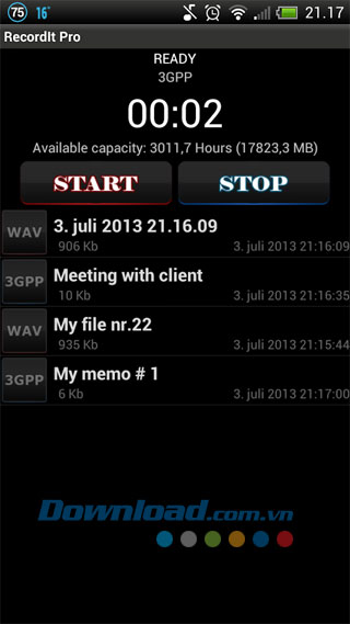 Record It là ứng dụng ghi âm giọng nói cho phép ghi lại trong cả hai định dạng WAV và 3GPP.