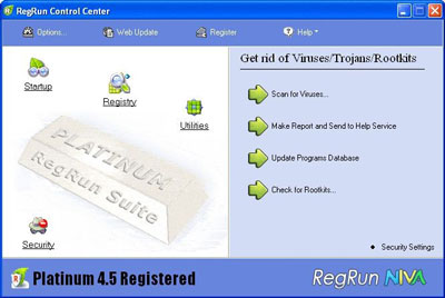 RegRun Security Suite 6.9.7.70 là một công cụ mạnh mẽ quản lý việc khởi động của máy vi tính. Nó kiểm soát các chương trình tự động chạy mỗi khi máy vi tính của bạn khởi động. Nó cho phép bạn dò tìm hay bổ sung thêm các chương trình và biên tập các tham số của chúng. Nó làm việc với Registry và tất cả các file cấu hình thông dụng. Nó tự động dò tìm và báo cáo về những thay đổi của các file cấu hình. Bạn sẽ dễ dàng biên tập các file hệ thống. Nhờ tất cả các thay đổi do RegRun làm đều có thể undo nên tính an toàn của nó rất cao. Ðiều đáng chú ý hơn cả là do nắm quyền quản lý khâu khởi động của hệ thống, RegRun có thể phát hiện ngay các Trojan và các chương trình có hại khác, thậm chí ngay từ trước khi các chương trình antivirus kịp trở bộ.