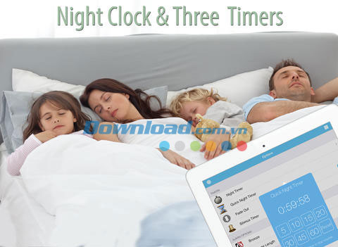 - Người lớn cũng như trẻ nhỏ đều dễ dàng chìm vào giấc ngủ với các âm thanh tự nhiên. Vì vậy ứng dụng được tích hợp 2 bộ đếm hẹn giờ ngủ dễ sử dụng, cho phép thiết lập nhiều khoảng thời gian với nhau, giúp bạn chìm vào giấc ngủ bình yên bằng nhiều loại âm thanh khác nhau.