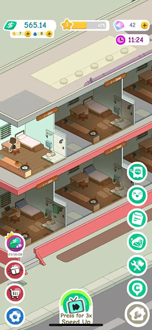 Mở khóa các loại phòng khác nhau và đảm bảo nâng cấp từng khu vực, bắt đầu từ phòng ngủ đến phòng vệ sinh. Người chơi có thể kiểm tra mức độ hài lòng của người thuê khi nhấp vào một trong các căn phòng và một vòng tròn có đánh số sẽ xuất hiện, đó là thang đo mức độ hài lòng của khách thuê. Game thủ càng nâng cấp thì mức độ hài lòng càng cao và khách hàng cũng sẽ trả thêm tiền thuê nhà, từ đó thu nhập cũng tăng lên.