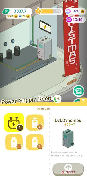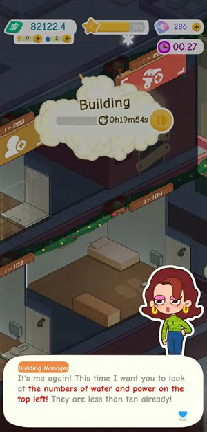 Người chơi cần liên tục bổ sung các phòng chung cư, sau đó là những người thuê nhà và cuối cùng là đáp ứng nhu cầu tổng thể về cấp nước và điện sẽ tăng tương ứng. Game thủ có thể dễ dàng nhìn thấy tỷ lệ phần trăm điện và nước còn lại ở phía trên bên trái của màn hình. Mặc dù rất khó có thể nhìn thấy nó ở mức 100%, nhưng cần đảm bảo nó luôn được duy trì trên 0%.