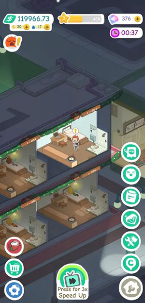 Mặc dù khá dễ nhận thấy ở cuối màn hình nhưng tính năng Speed Up (tăng tốc) có thể dễ dàng bị bỏ qua, đặc biệt khi người chơi xu hướng rất bận rộn tìm kiếm các phòng, cơ sở vật chất và các menu khác để khám phá hoặc lên kế hoạch cho bước đi tiếp theo của mình. Chức năng tăng tốc thực hiện chính xác những gì nó thể hiện, đó là đẩy nhanh thời gian, đi kèm với các lợi ích cụ thể.