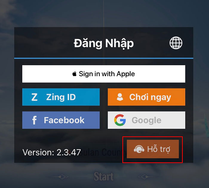 Bước 1: Tại giao diện đăng nhập trò chơi, game thủ cần nhấn nút Hỗ trợ.