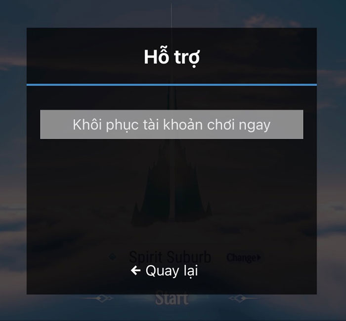 Bước 2: Trong menu Hỗ trợ, chọn Khôi phục tài khoản chơi ngay.