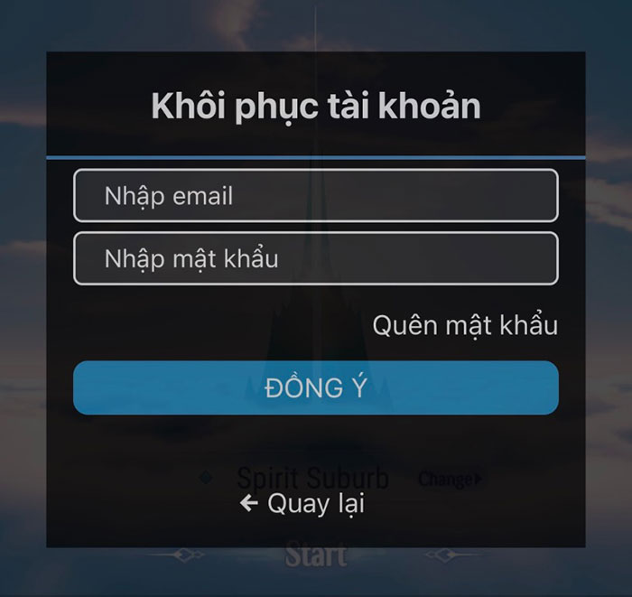 Bước 3: Nhập email và mật khẩu mọi người đã đăng ký ở mục trên. Sau đó nhấn Đồng ý để đăng nhập vào tài khoản Revelation: Thiên Dụ trên thiết bị khác.