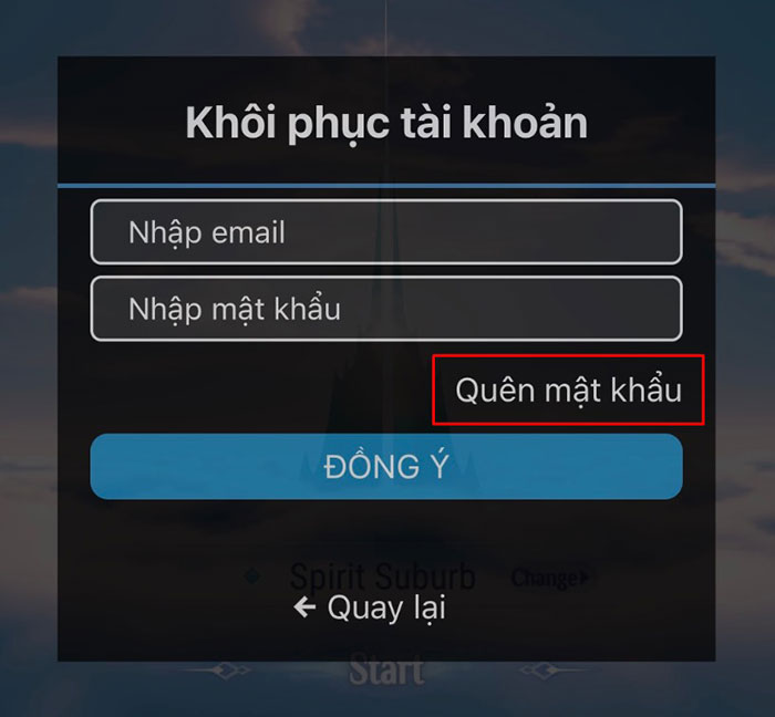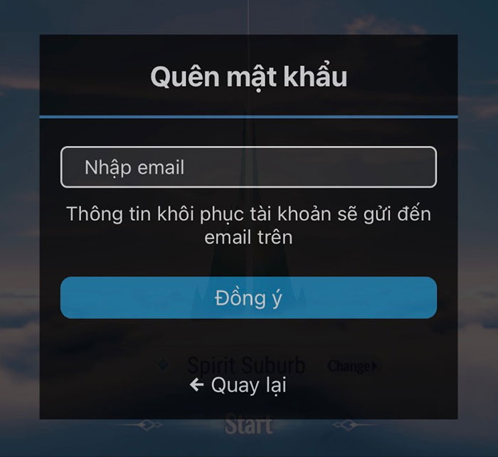 Bước 2: Nhập chính xác email tài khoản đã đăng ký và nhấn nút Đồng ý.