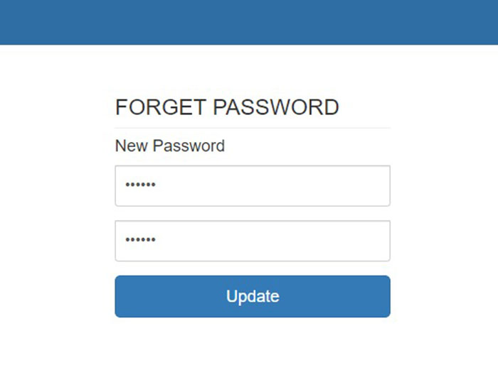 Bước 4: Tại trang Forget Password, nhập lại mật khẩu mới và nhấn Update để cập nhật mật khẩu mới.
