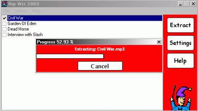 Rip Wiz 2003 là phần mềm giúp trích xuất đĩa nhạc CD thành tập tin WAV hay MP3 một cách đơn giản và nhanh chóng.