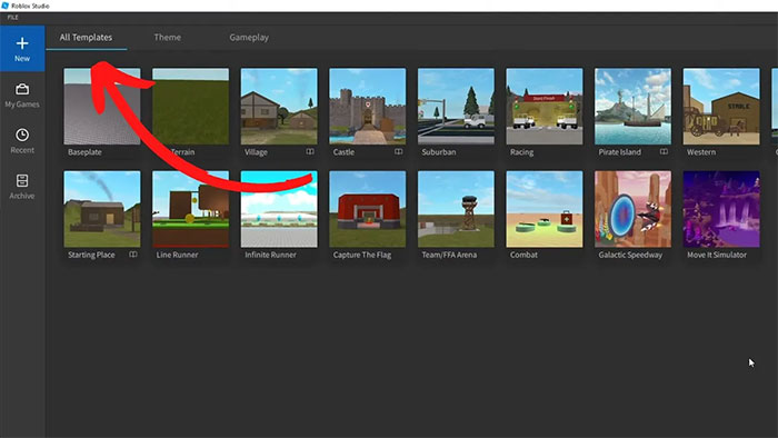 Bước 6: Click vào +New trên thanh công cụ bên trái và chọn Gameplay. Chọn một mẫu phù hợp với trò chơi mình muốn từ danh sách All Templates. Roblox cho phép điều chỉnh các mẫu trò chơi tùy thích để đạt được kết quả mong muốn.