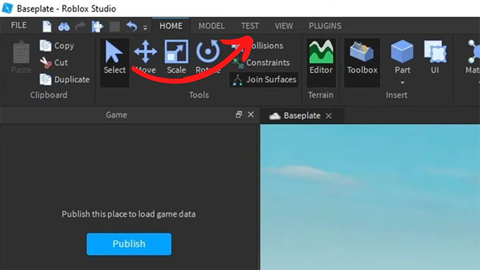 Bước 8: Kiểm tra trò chơi vừa chỉnh sửa từ template bằng cách click vào Test trên thanh menu trên cùng. Điều này giúp ngườ dùng xác định bất kỳ lỗi nào có trong trò chơi của mình.