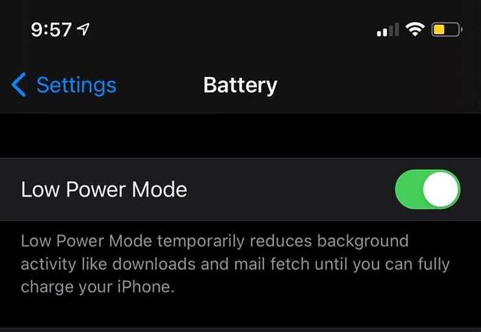 Giống như Chế độ trên máy bay, Chế độ nguồn điện thấp của iPhone có thể tăng tốc quá trình sạc bằng cách giảm khối lượng công việc trên điện thoại. Khi Chế độ nguồn điện thấp được bật, hầu hết các tác vụ nền không cần thiết sẽ tạm thời giảm hoặc tạm dừng.