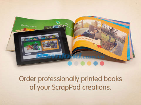 Phiên bản mới của ScrapPad - Movie Night Collage for iPad cho phép người dùng đặt hàng in sách ảnh dạng bản cứng chuyên nghiệp trực tiếp từ chương trình, dịch vụ được cung cấp bởi Printzel.