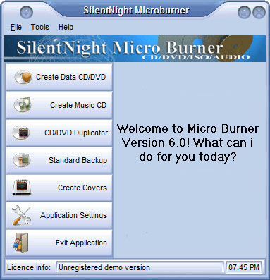 SilentNight Micro CD Burner là chương trình ghi đĩa nhỏ gọn, cho phép ghi dữ liệu lên các đĩa CD/DVD, ghi theo chuẩn Audio CD, ISO và hỗ trợ xóa đĩa CDRW.