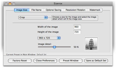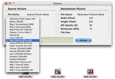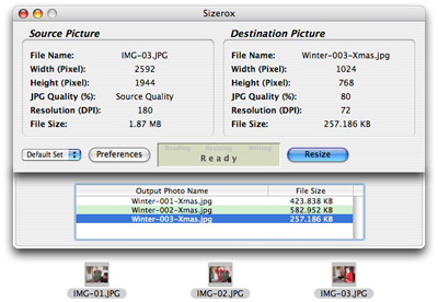 Khi người sử dụng muốn đính kèm một bức ảnh vào eMail, tải một file ảnh nào đó lên trên mạng, blog cá nhân, các mạng xã hội chia sẻ, hoặc đơn giản, lưu trữ những bức ảnh đó vào các thiết bị kỹ thuật số như iPod hoặc iPhone. Với các thao tác đi kèm như tùy chỉnh kích cỡ, đổi tên, nhúng watermark... tất cả sẽ trở nên đơn giản hơn rất nhiều với Sizerox, chỉ với một thao tác kéo và thả các file ảnh cần xử lý vào cửa sổ ứng dụng chính.