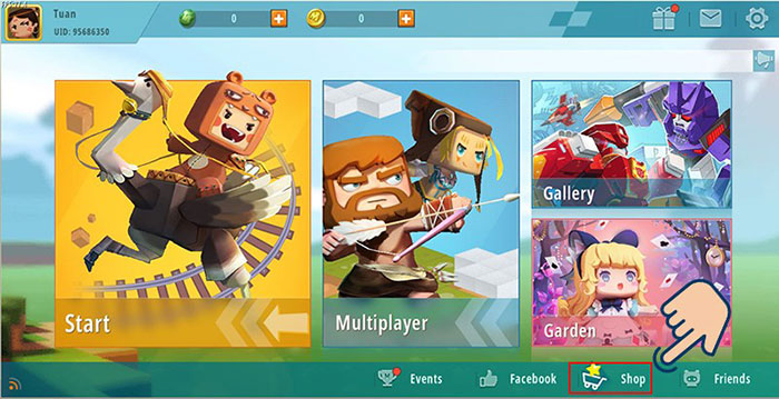 Bước 1: Đầu tiên trên màn hình chính của game Mini World: Block Art, mọi người nhấp vào Shop.