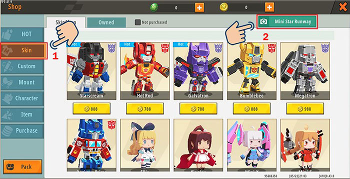 Bước 2: Tiếp theo vào Skin và click vào Mini Star Runway.