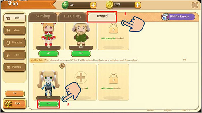 Bước 7: Vào Shop-Skin-Owned, tìm skin DIY đã làm và nhấp để sử dụng.