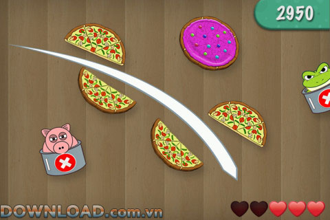 Tương tự trò chơi chém hoa quả nổi tiếng, nhiệm vụ của người chơi là chém đôi miếng pizza xuất hiện trên màn hình, và tránh không chém vào hộp thịt chưa heo, ếch hoặc gà.